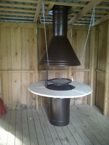 Seinäelementit ,kattoelementit,penkit,tulipesä,tulipesän ympärys laudat,piippu ja huuva kaikki osat pulverimaalattu.ritilä lattia elementit.Musta palahuopa kiinitetty katto elementteihin.kasaus ohjeet.kiinitystarvikkeet.