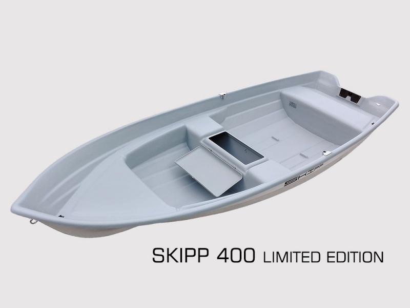 Skip 400.Pituus 400cm.Leveys 142cm.Paino 75kg.Kantavuus 417kg.Mootori suositus 4hv lyhytrikinen mootori.Hinta 1240€