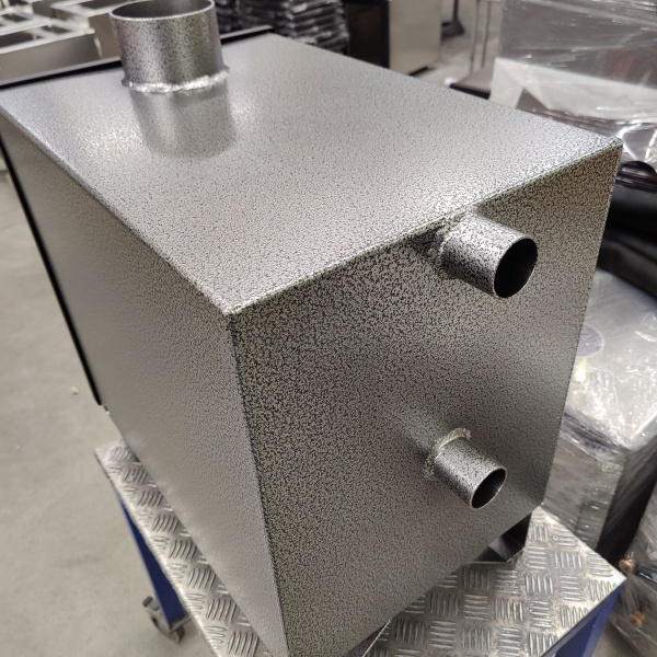 Standart väri kaminan ulkokuori alumiini.Etupaneeli musta.