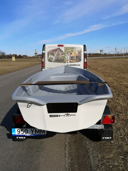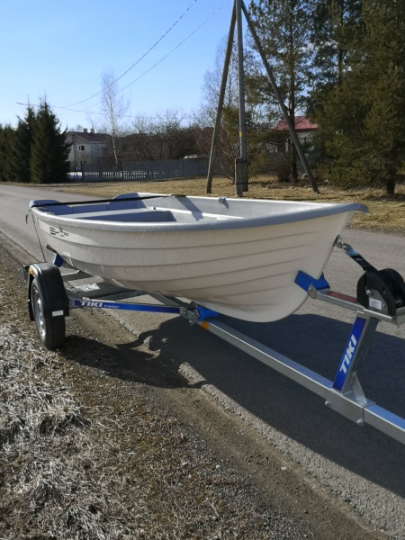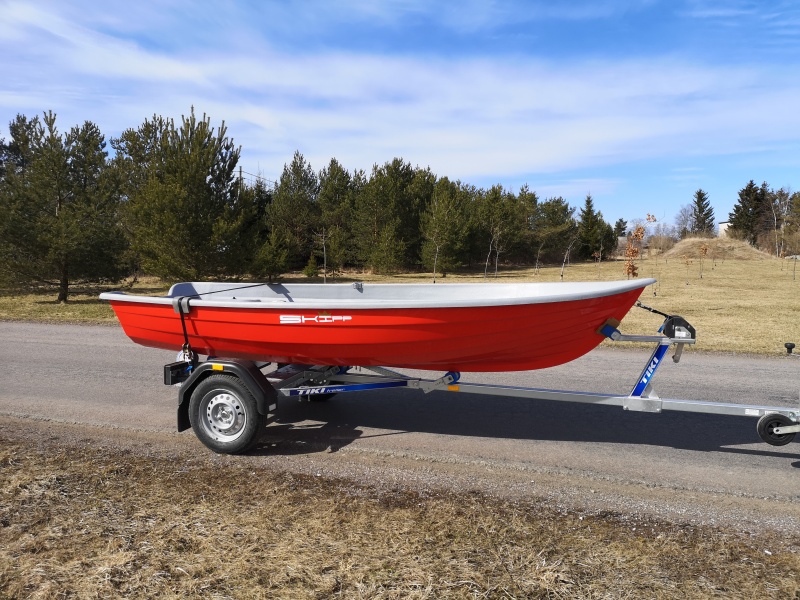 Skip 400.Pituus 400cm.Leveys 142cm.Paino 75kg.Kantavuus 417kg.Mootori suositus 4hv lyhytrikinen mootori.Hinta 1240€