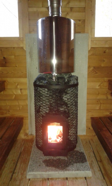 Asiakkaalle jää vain vesisäiliön ja piipun asennu.katossa on valmiina läpivienti reikä piipulle.Tippalistat kattohuovan reunan alle.