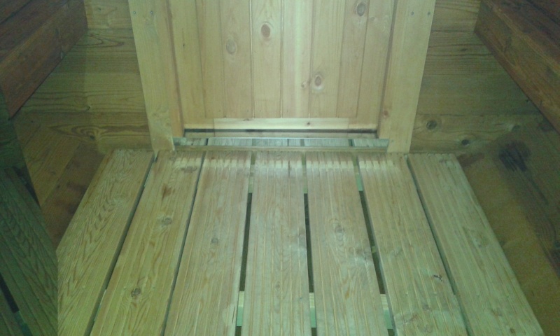Saunan lattiassa on reikä pesuvesien poistoa varten.