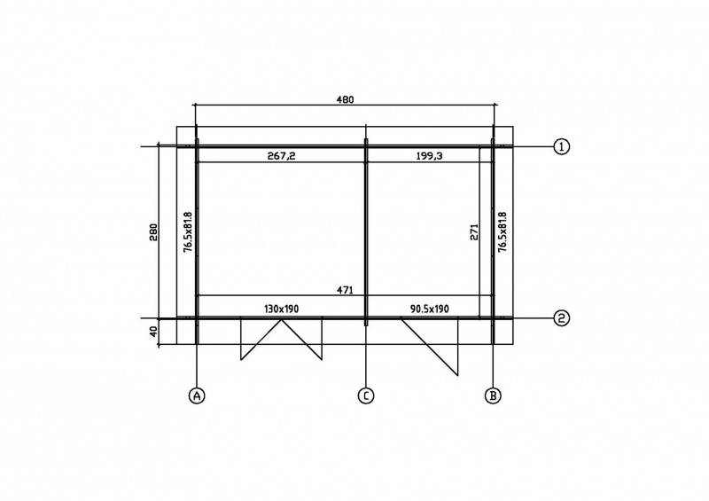 - kaksi avattavaa lasielementti-ikkunaa, koko 765 × 818