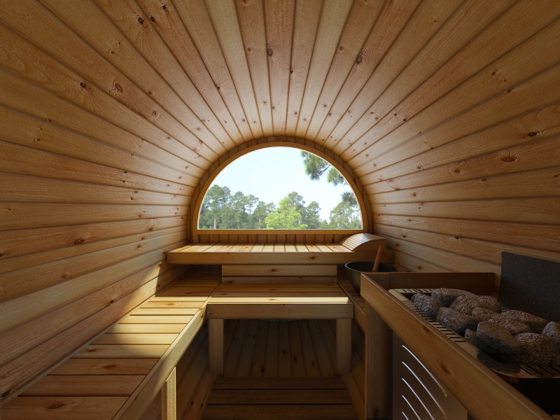 - Puolipyöreä ikkuna saunan takaseinään