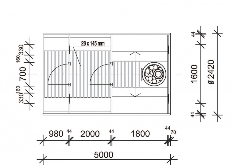 - Saunan sisätiloja ja seinien paikkoja voi muuttaa lisähintaan