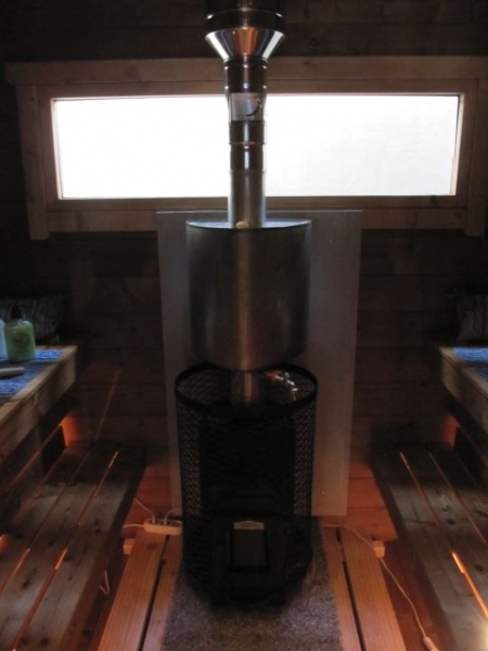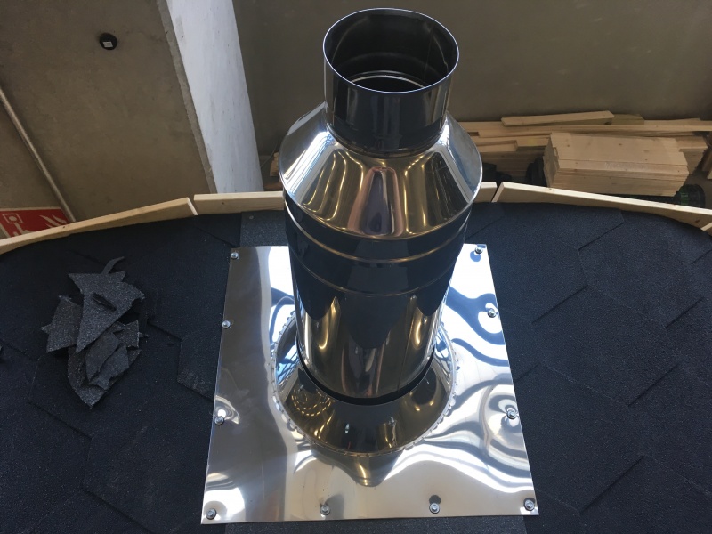 Asiakkaalle jää vain vesisäiliön ja piipun asennu.katossa on valmiina läpivienti reikä piipulle.
