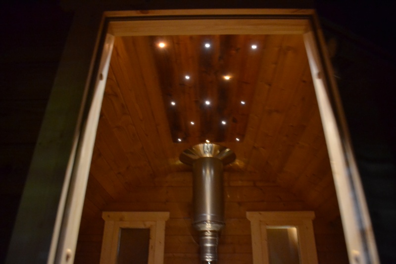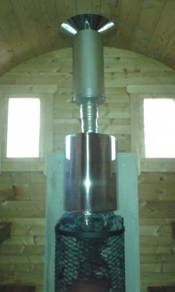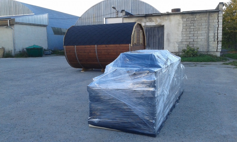 Asiakkaalle jää vain vesisäiliön ja piipun asennu.katossa on valmiina läpivienti reikä piipulle.Tippalistat kattohuovan reunan alle.