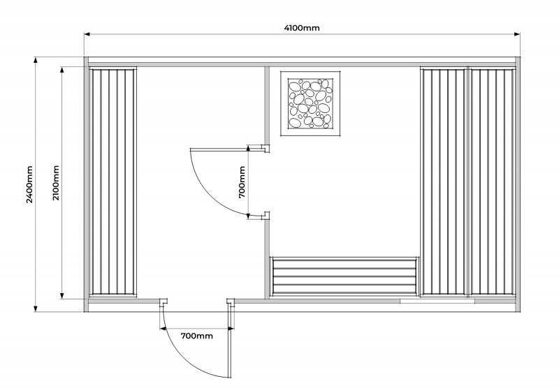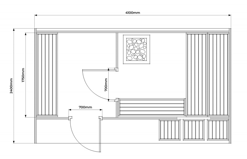 - kaksiportaiset L-muotoiset lauteet ,puhkuoneessa penkki