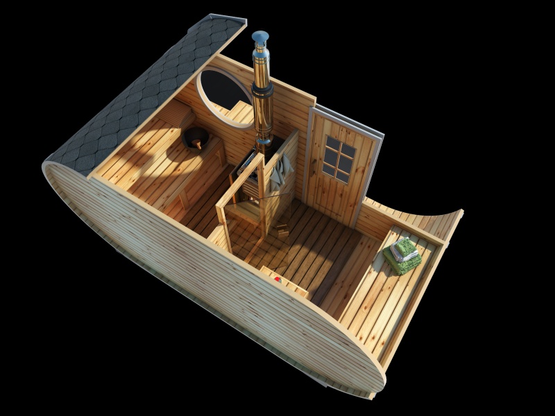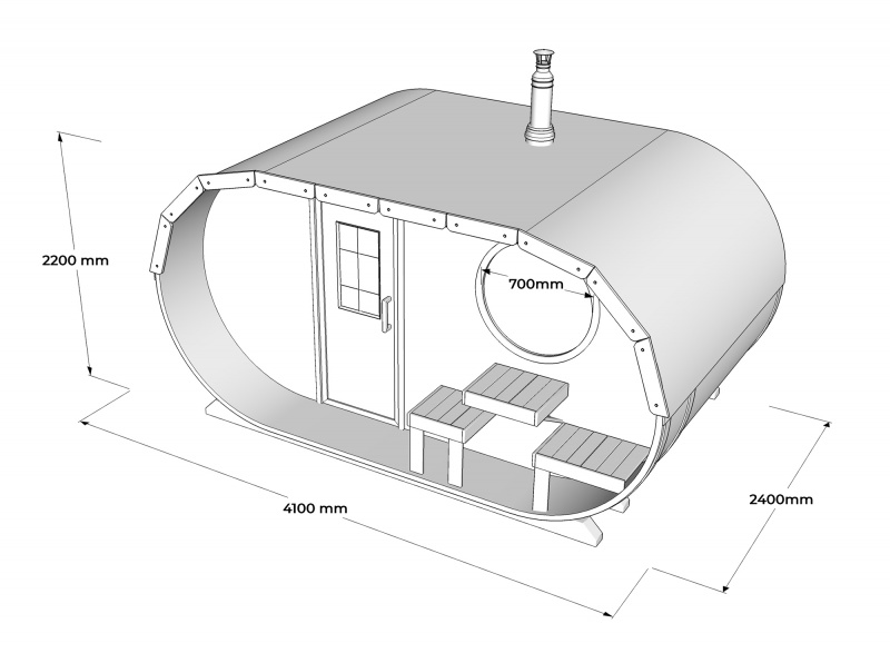 Tynnyrisauna Terassilla 240X400 ovaali Kuusi