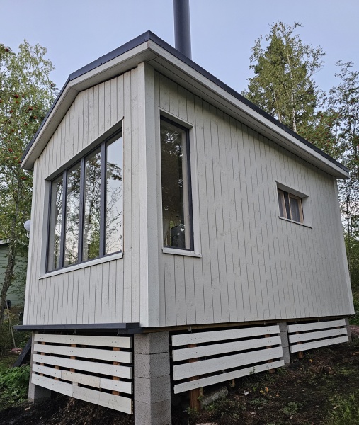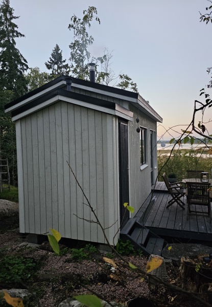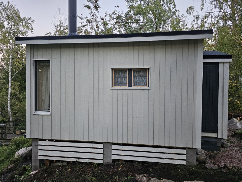 - Sauna on käsitelty sisältä saunavahalla ja ulkopuolelta puuöljyllä